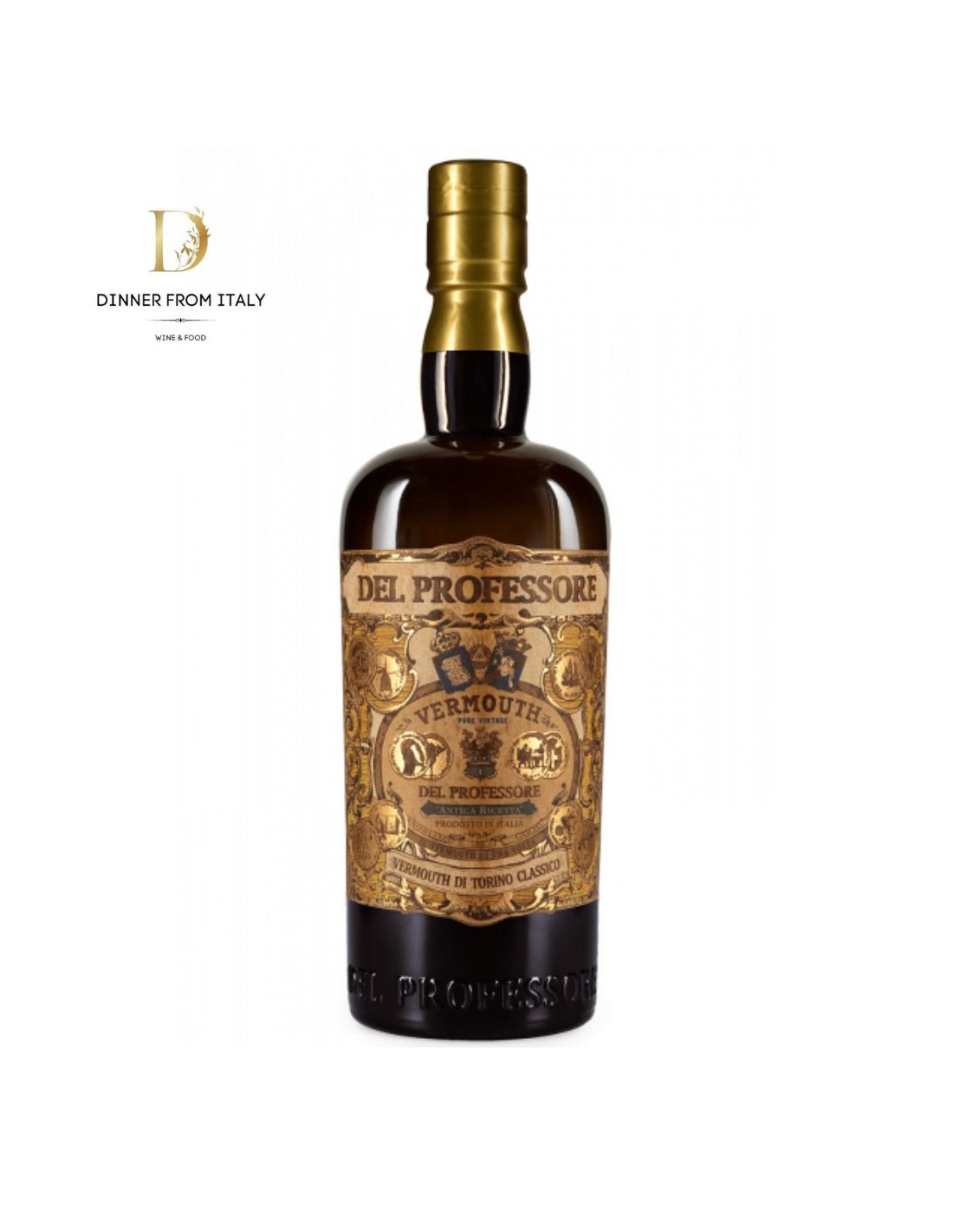 Il Vermouth del Professore è stato creato alla base di un vino moscato bianco delle Langhe, a cui è stato aggiunto alcool purissimo e di raffinata distillazione, poi una quindicina tra erbe aromatiche e officinali raccolte lungo i declivi alpini che contornano Torino, più le spezie. Lo zucchero immesso è di canna e purissimo. Il Risultato è una specialità unica: il perfetto aperitivo in stile italiano.
