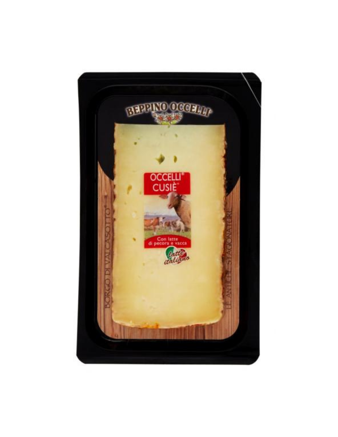 In the village of Valcasotto, Beppino Occelli matures his finest cheeses, produced in the Langhe region or selected from the mountain pastures of the Cuneo Alps. In the ancient cellars, the air, the purest water, the constantly monitored humidity, and the passage of time work in perfect harmony with his maturers to shape the identity and personality of each cheese. Made from goat's and cow's milk, "Cusiè"® ages for at least four months in the Valcasotto cellars on wooden boards in the valley. Beppino Occelli also recommends Cusiè in the kitchen as a ravioli filling, shaved over hot pasta dishes, or in cold seasonal salads.