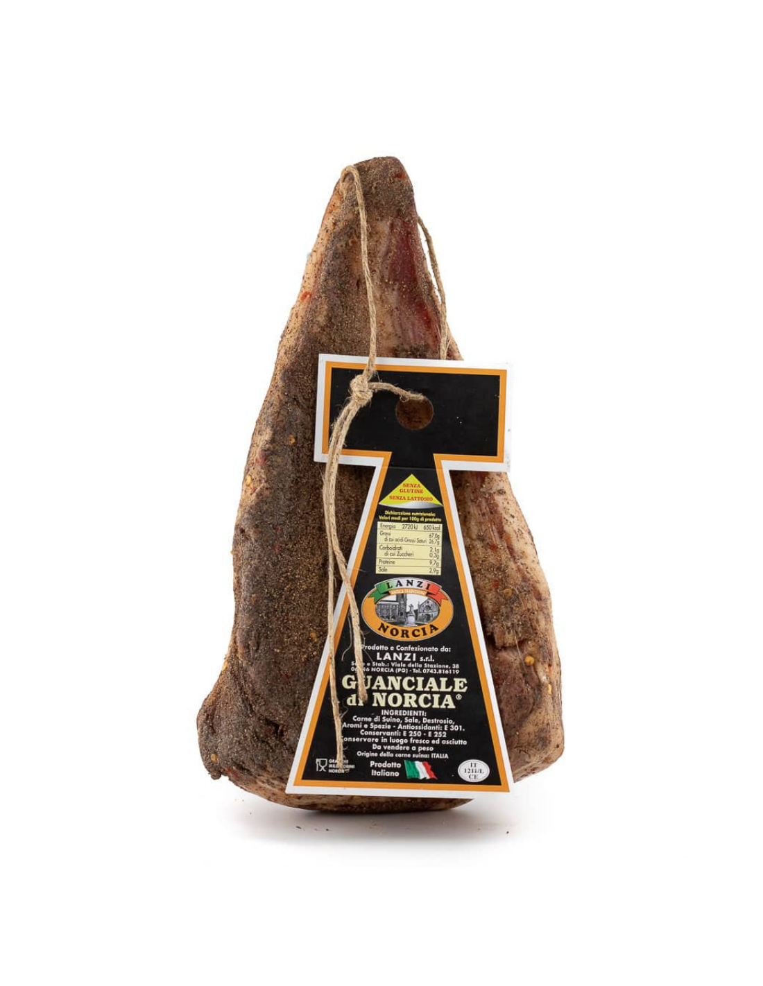 Il guanciale di Norcia stagionato è un salume molto saporito prodotto storicamente in Umbria dall'azienda Lanzi.