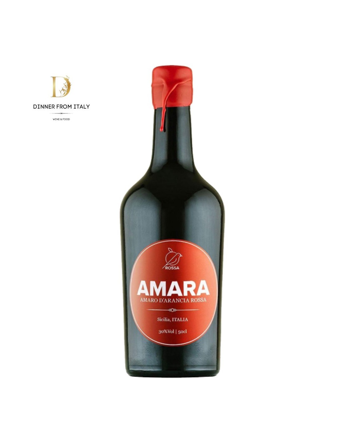Amaro "Amara" Rossa presents a clear amber color with coppery highlights. The nose reveals intense sensations of candied orange peel, spicy notes of cinnamon, star anise, and cloves, with darker hints of cinchona. Its distinctive, distinctive flavor is rich in bitterness, and it opens decisively, smoothly, and roundly, with numerous citrus and spicy overtones consistent with the aroma. The orange blossom lingers for a long time.