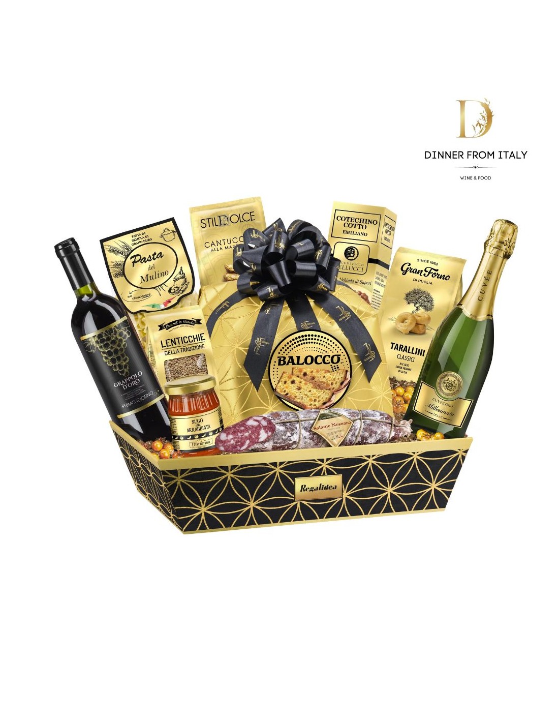 Regalidea Giglio Christmas Gift Basket with 11-piece gourmet specialties in a Christmas gift box. Attention to detail and product quality characterize this gift box. A selection of excellent food and wine products, ideal for satisfying all tastes.