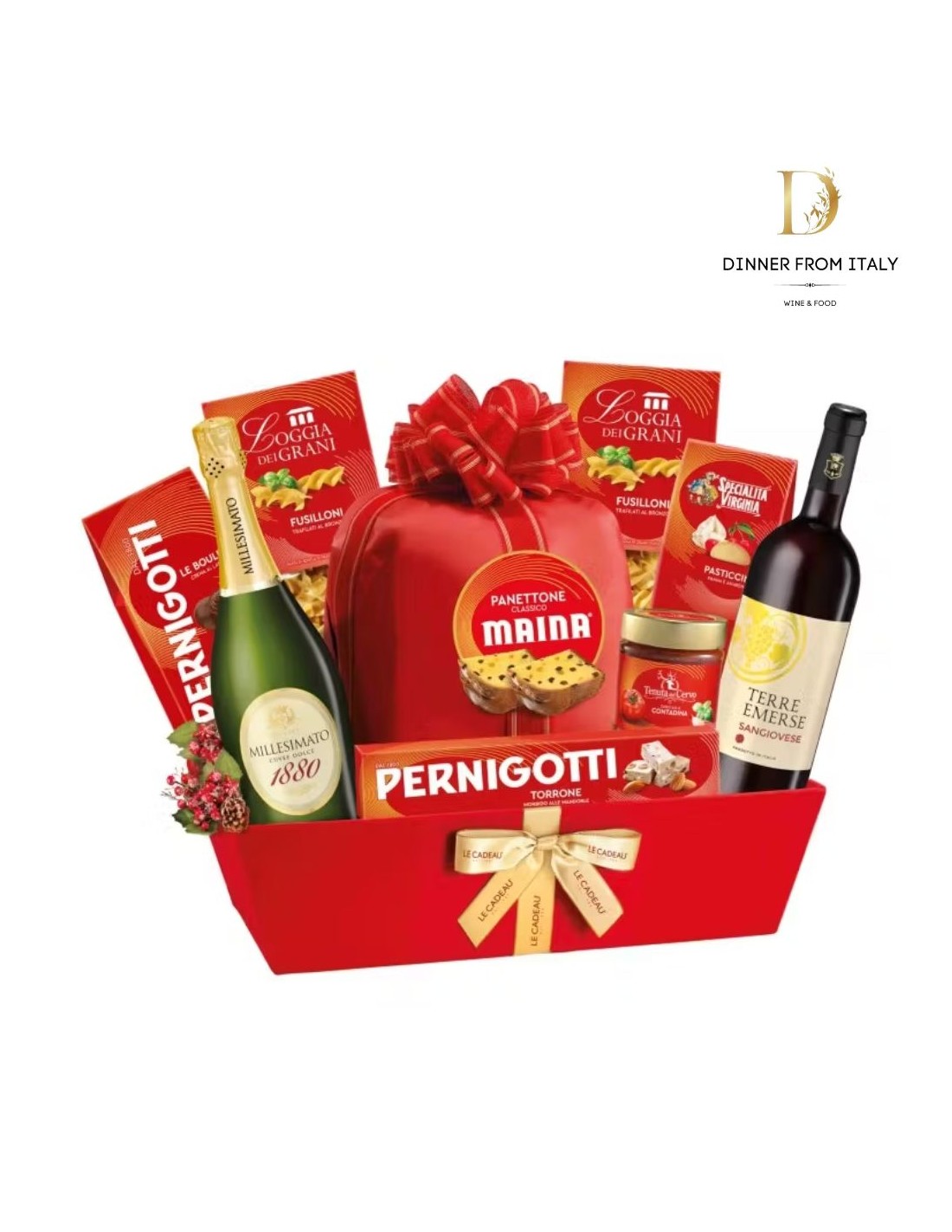 Cesto di Natale Rosso Rubino, dimensioni esterno scatola 50cmx30cmx26cm