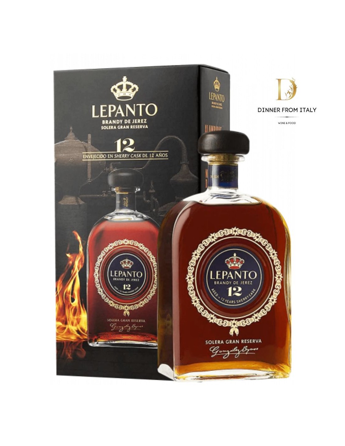 Lepanto è un Brandy spagnolo di altissima qualità, interamente prodotto nel distretto vinicolo di Jerez, dalla distillazione di uve tradizionali 100% Palomino, vitigno storico per la produzione di questa tipologia. La carta vincente di questo prodotto è senza dubbio il suo lungo processo artigianale di lavorazione: 12 anni di invecchiamento in botte, di cui 9 anni in botti di Sherry Tio Pepe e i restanti 3 in botti che hanno contenuto Mathusalem.
