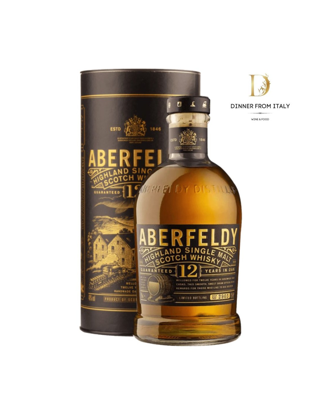 Questo Whisky prodotto dalla distilleria Aberfeldy nel Midlands, nel cuore della Scozia, ottenuto da ingredienti perfettamente equilibrati e naturali, come il malto coltivato proprio in queste zone e l’acqua del fiume Tay che, nel suo percorso delle sorgenti Pitilie scorre su pietre e arenaria che la rendono ancora più pura e ricca di minerali. Invecchiato 12 anni in botti di rovere, questo whisky è considerato tra i migliori della sua categoria, grazie alle caratteristiche di morbidezza e dolcezza che lo contraddistinguono.
