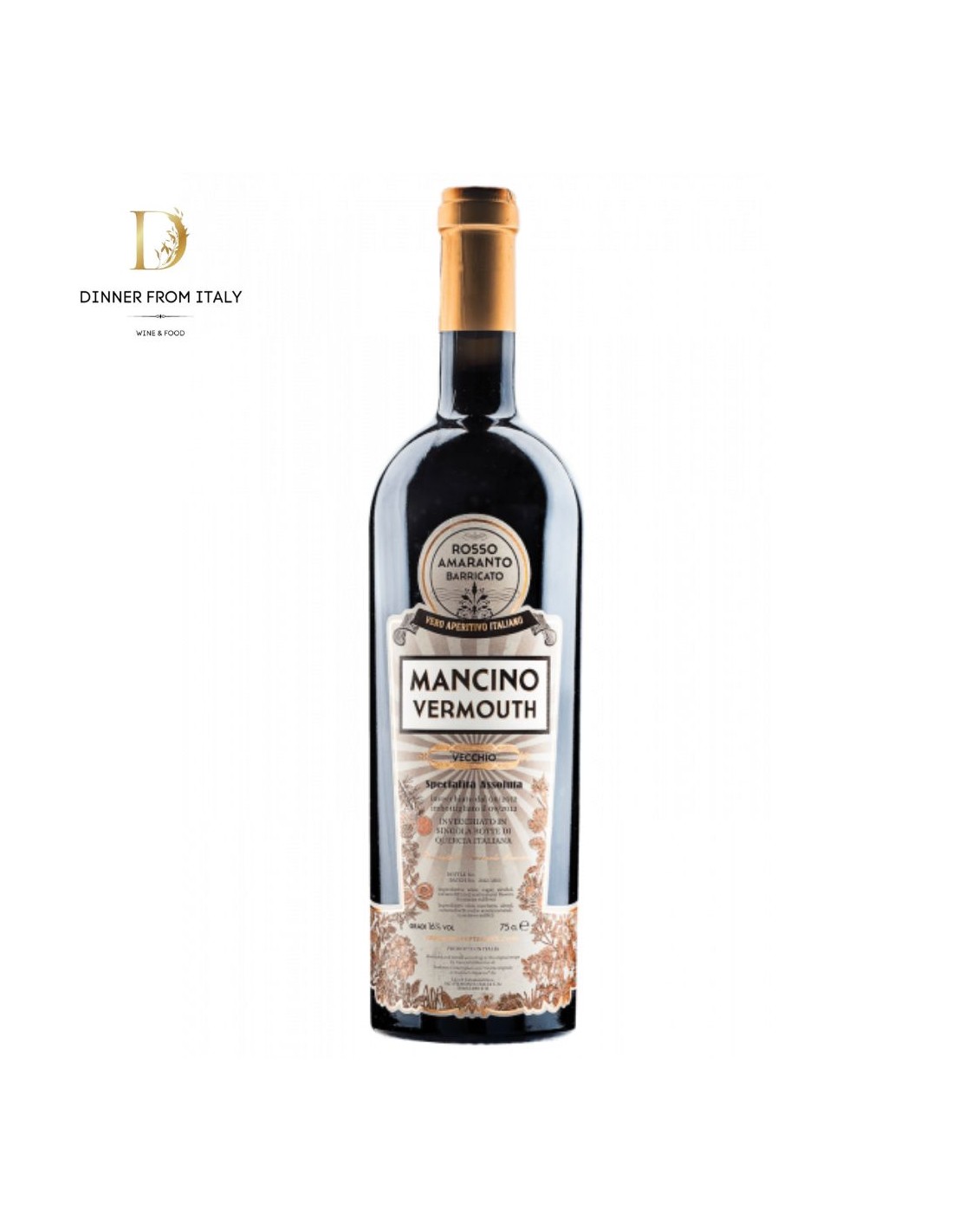 Mancino Vecchio Vermouth displays a dark amber color with copper highlights. On the nose, it expresses intense aromas of wood, sweet spices, brandied cherries, tobacco, and cocoa. On the palate, it is smooth and enveloping, with notes of dried fruit, caramel, and a pleasantly bitter finish.