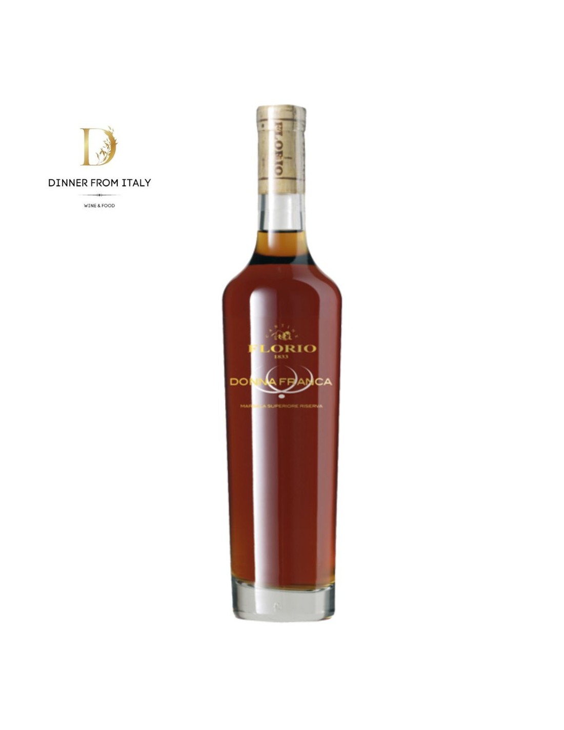 Marsala Superiore Riserva DOC "Donna Franca" Florio, alla degustazione si preesenta con un colore giallo topazio luminoso con lucidi riflessi ambrati, al naso ammalia con i suoi aromi di albicocca e pesca sciroppate, datteri e frutta secca tostata, insieme ad un bagaglio speziato che è un’esplosione d’Oriente. Assaggio pieno, ricco, morbido, mostra una trama vellutata che non stanca mai, coadiuvata dalla nota salina che arriva in seconda battuta e che rende il sorso agile e scorrevole. Lunghissima la persistenza di caramello e mandorla amara.