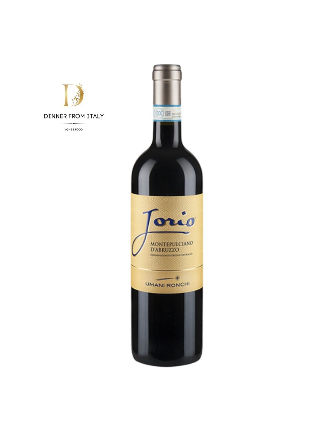 Il Montepulciano D'Abruzzo "Jorio" di Umani Ronchi, alla degustazione si presenta con un colore rosso rubino compatto con unghia porpora, al naso esprime profumi che evocano la frutta rossa in confettura, note floreali di rosa rossa, cacao in polvere e liquirizia, con accenni amaricanti di china e toni speziati dolci di vaniglia. Assaggio ben bilanciato fra calore alcolico, freschezza e tannini, con un corpo ammiccante e marcato nei rimandi torrefatti.
