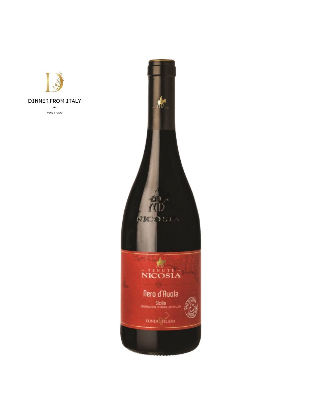 Sicilian IGT Nero d'Avola Organic "Fondo Filara" Nicosia, presents an intense ruby red color and offers ripe aromas of cherry jam, lava stone, dried herbs, licorice, and tobacco. Full-bodied and warm, savory and refreshing on the palate, it has rounded tannins and a lingering smoky finish.