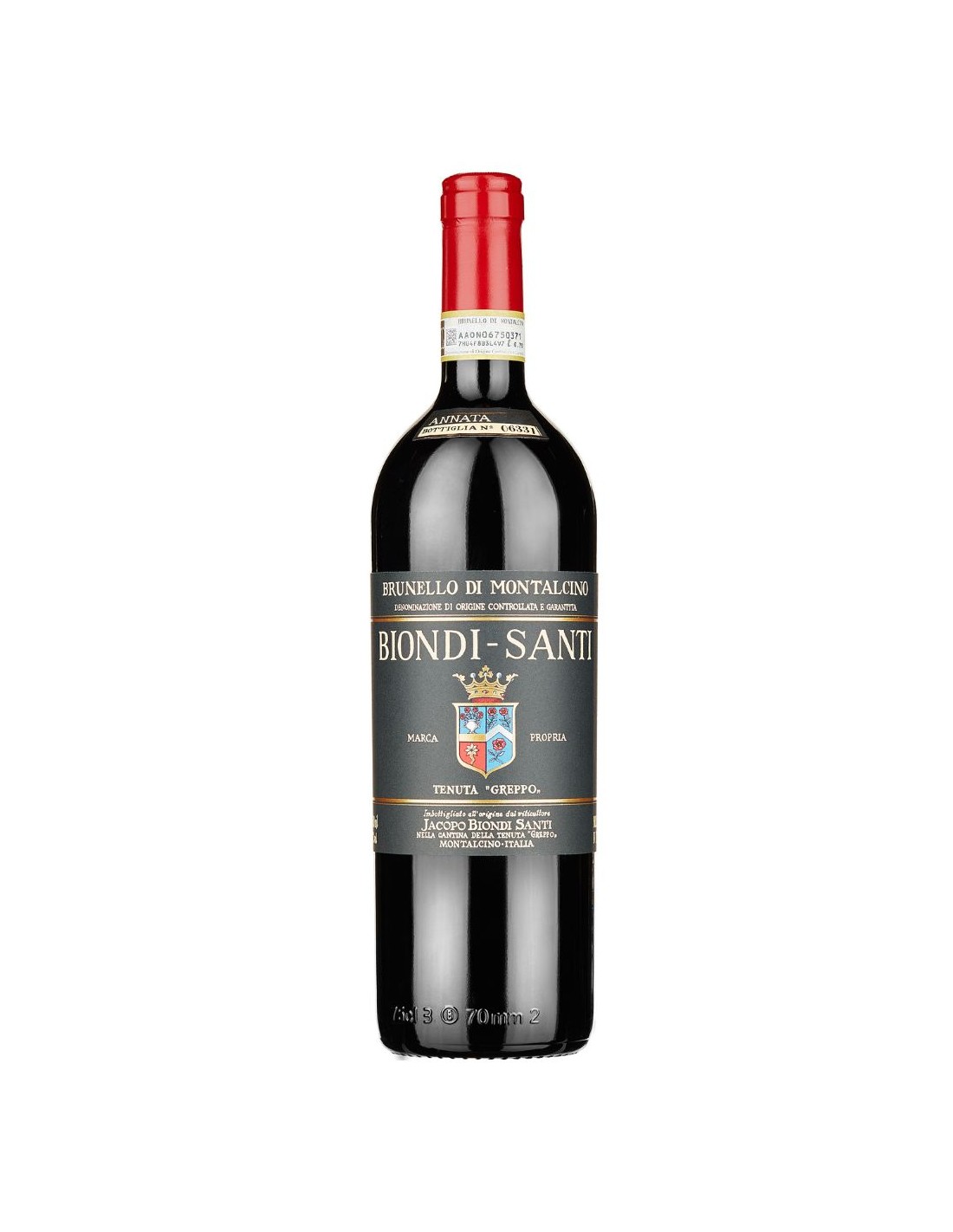 - Vino Brunello di Montalcino DOCG Biondi Santi di color rosso rubino con leggeri riflessi granato, al naso esprime un profilo olfattivo di grandissima finezza. Note di violetta, di ribes, di visciola e di rosa passita si fondono a toni balsamici e vegetali. Profumi di tabacco e di spezie orientali aprono poi ad un assaggio lunghissimo e materico, straordinariamente fresco, vibrante, sostenuto da una trama tannica puntuale e da una leggera acidità. Grande chiusura, di persistenza infinita.
