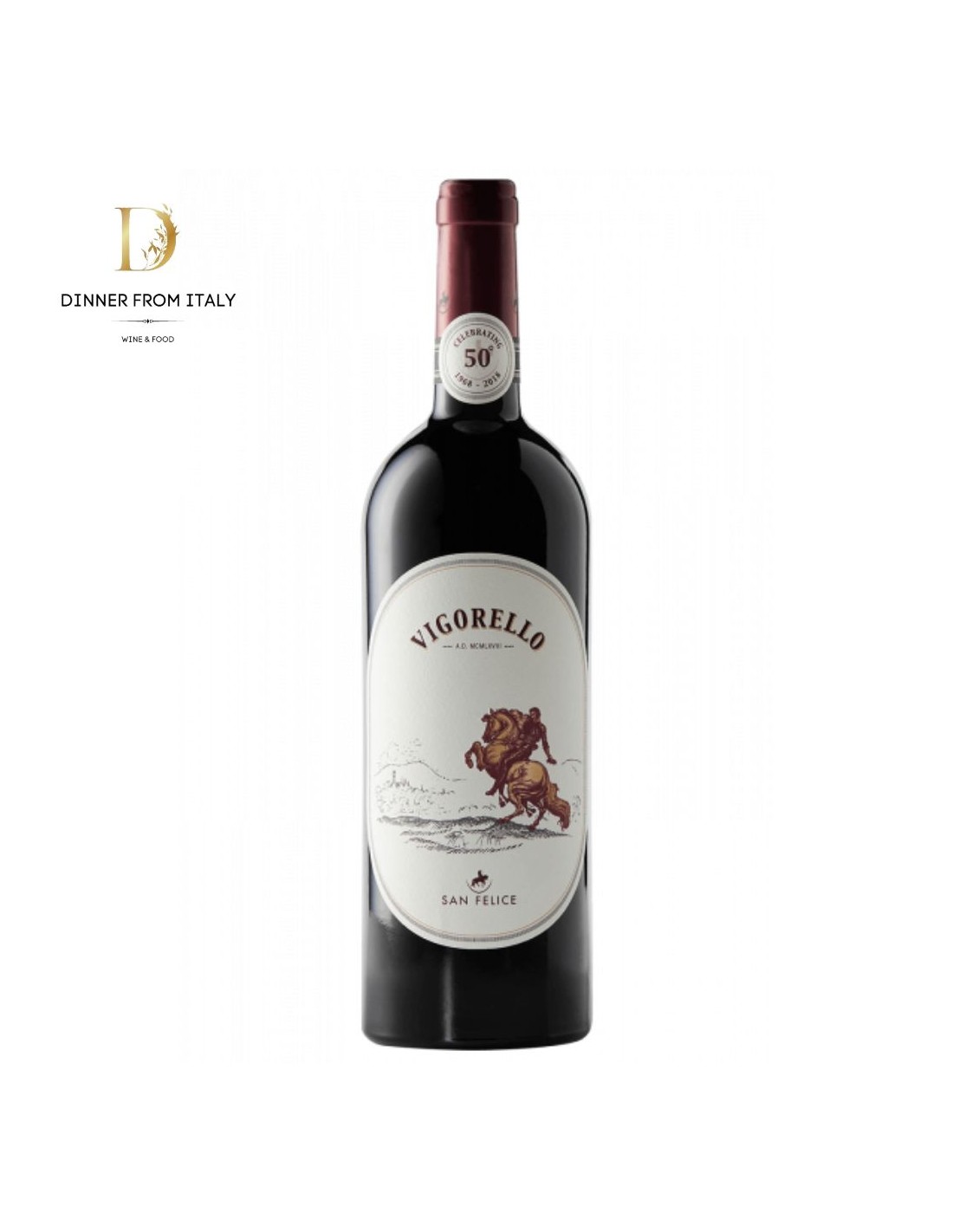 Il Toscana IGT "Vigorello" della cantina San Felice è un vino rosso armonico e molto promettente. Prodotto per la prima volta nel 1968, Vigorello è stato il primo di quei vini che il mondo intero conosce come ‘Supertuscan’, termine coniato dal critico di fama mondiale Robert Parker per indicare quei vini, prodotti in Toscana, da uve a bacca rossa internazionali. Il suo uvaggio è prettamente di stampo bordolese e vede Merlot, Cabernet Sauvignon e Petit Verdot ma San Felice, per legarlo ancor più al suo territorio, ha aggiunto nel blend anche una massiccia percentuale (circa il 35%) di Pugnitello, uva autoctona della zona di Siena.