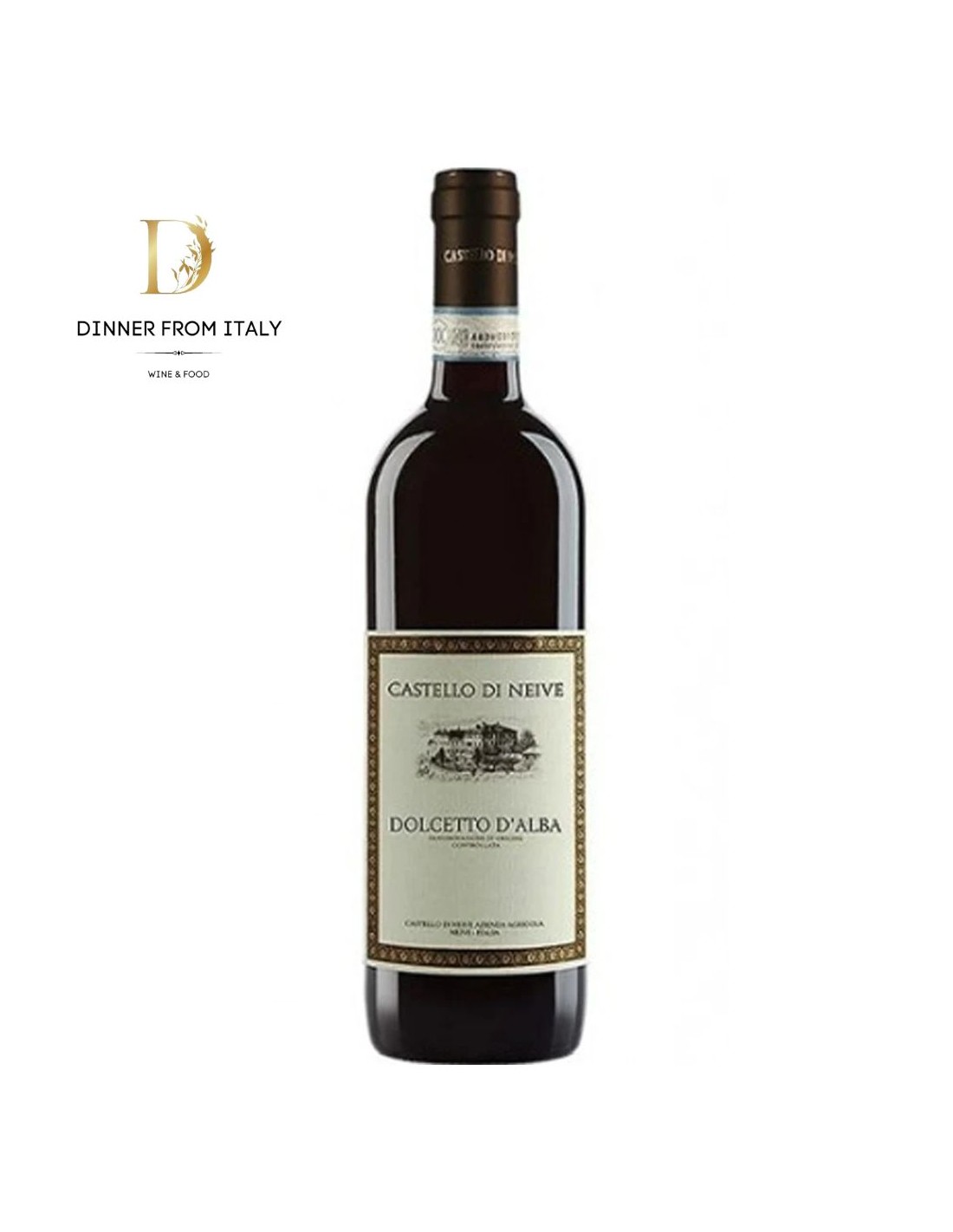 Dolcetto d'Alba DOC Castello di Neive presents a ruby red color with distinct purple highlights. The nose is fresh and direct, offering primarily fruity aromas, complemented by subtle floral notes. On the palate, it is light-bodied, drinkable, and fresh, without any harshness.