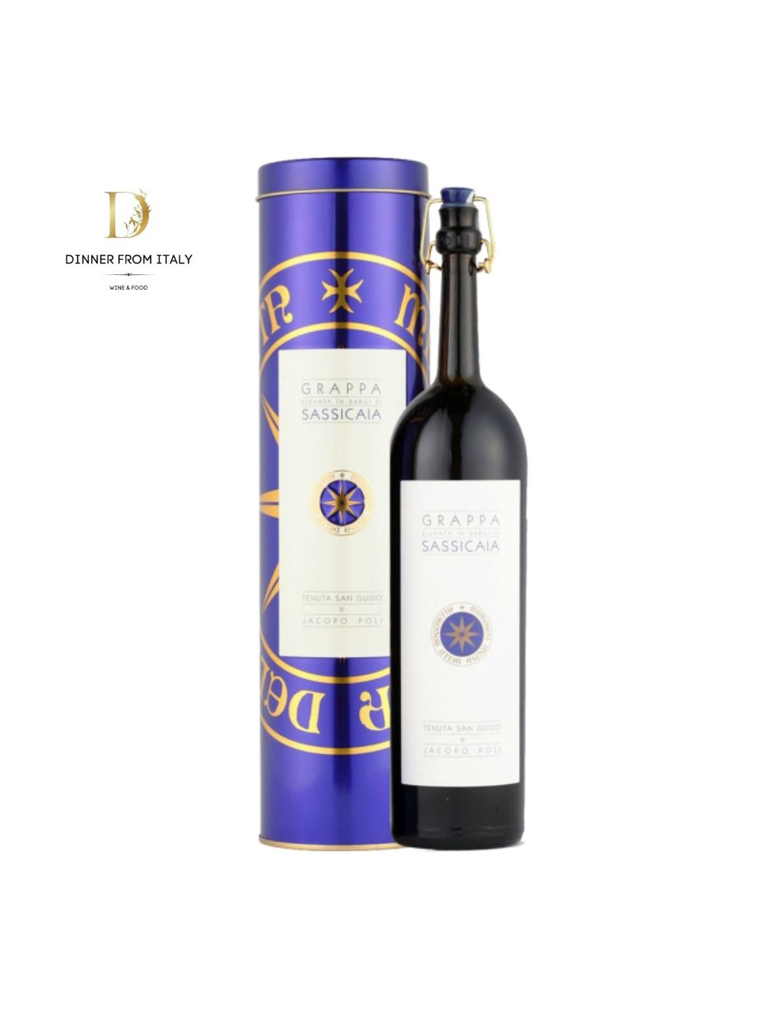 La Grappa di Sassicaia nata da vinacce di Cabernet Sauvignon e Cabernet Franc distillate a vapore, elevata quattro anni in barrique e, per calcarne ancor più la tipicità, ulteriori 6 mesi in barili in cui, precedentemente, è stato affinato il vino Sassicaia. Dall'aroma aristocratico e complesso, questa grappa vi lascerà estasiati.