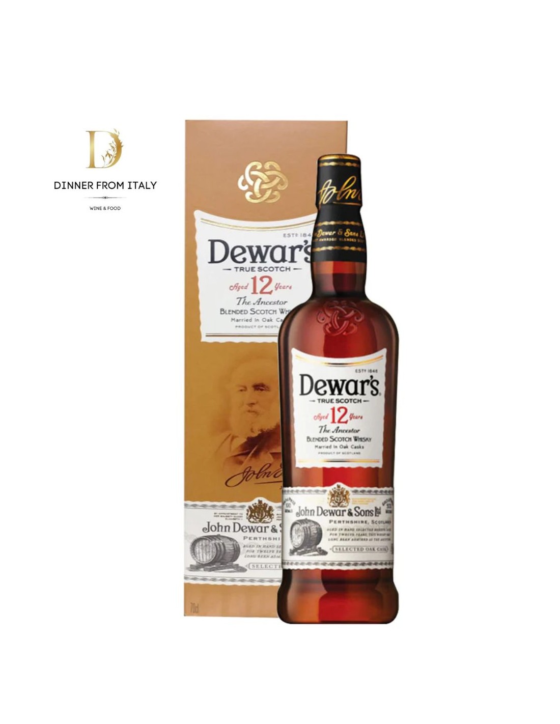 Il Whisky 12 Anni Dewar's è lo Scotch più rappresentativo della famosa distilleria delle Highlands scozzesi. Viene realizzato da un perfetto e calibrato assemblaggio dei migliori Whisky scozzesi, maturati almeno 12 anni in legno, dando origine ad un sorso aromatico, avvolgente e setoso, con intense sfumature di frutta secca, mandorla, datteri, spezie dolci e miele di castagno