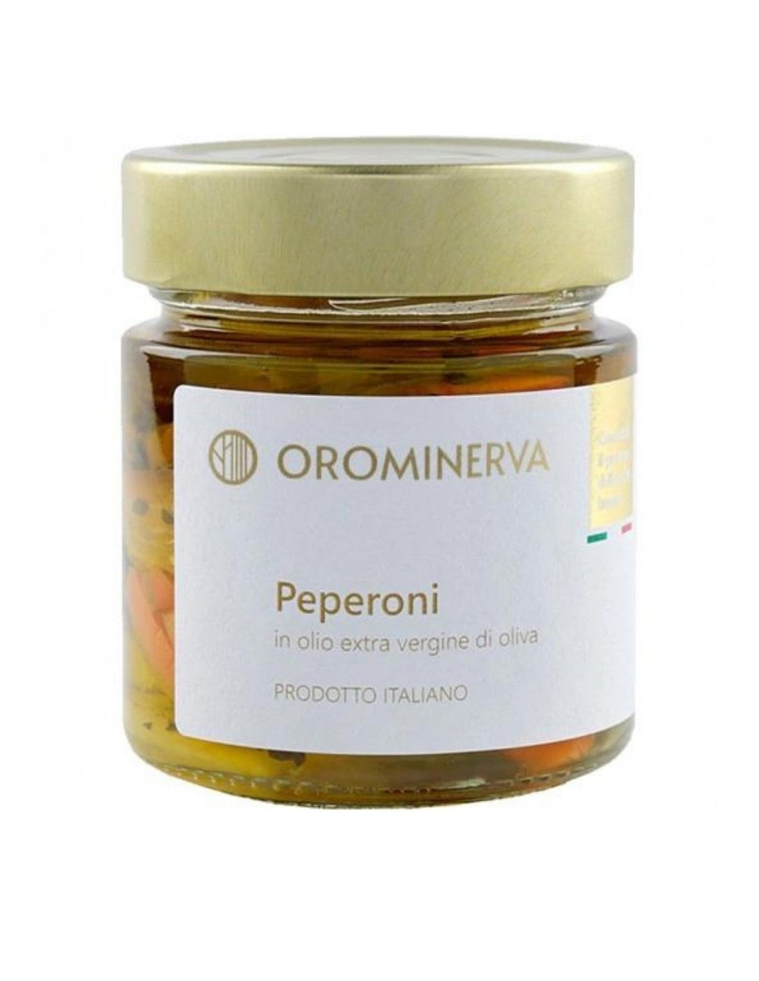 I peperoni sott’olio Orominerva sono deliziosi filetti di peperoni gialli e rossi, scottati e conditi con pochi ingredienti di altissima qualità, il prezzemolo e il nostro olio extra vergine d’oliva.