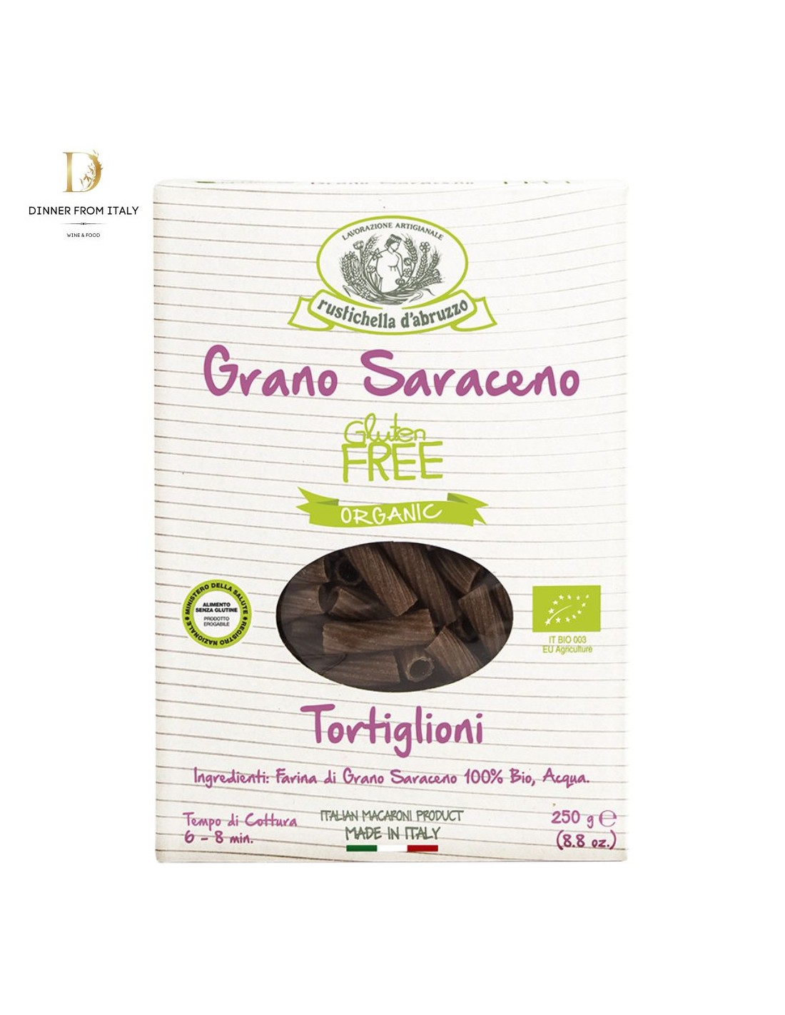 Contrariamente a quello che il nome farebbe pensare, il Grano Saraceno non è un cereale ma una pianta erbacea annuale, appartenente alla famiglia delle Poligonacee. Sull'origine del nome esistono due ipotesi: la prima lo attribuisce al colore della pelle dei Saraceni in quanto scura, la seconda perché diffuso in Italia dai Saraceni. Si distingue dai comuni cereali per l'elevato valore biologico delle sue proteine, che contengono gli otto amminoacidi essenziali in proporzione ottimale. Dalle proprietà remineralizzanti ed energizzanti, in quanto presenta alti livelli di magnesio e manganese, i Tortiglioni rappresentano anche una gustosa alternativa ad un primo piatto gourmet.