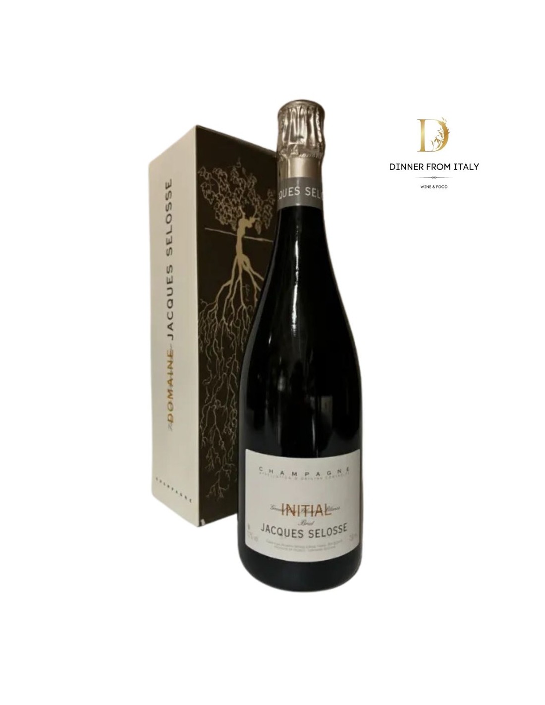 Lo Champagne Brut Initial targato Jacques Selosse è uno pregiato Champagne, ottenuto da uve Chardonnay in purezza, è uno Champagne raffinato e imponente che affina a lungo sui lieviti per un bouquet complesso di fiori, frutti e spezie e un sorso fresco e potente.