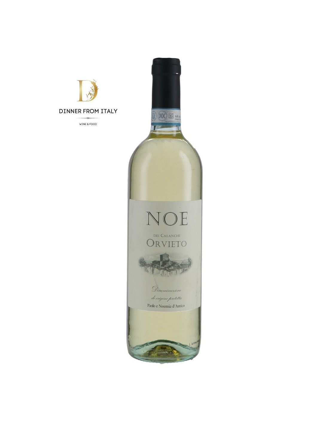 Quella di Orvieto è una denominazione vitivinicola che ha origini antichissime, risalente addirittura ai tempi in cui gli etruschi lasciavano fermentare il mosto nelle grotte di tufo sotterranee. Ed è a queste antiche tradizioni che il "Noe dei Calanchi" resta legato, proponendosi però anche come un vino al passo con i tempi moderni e di eccellente bevibilità. Le uve di Grechetto, Trebbiano e Pinot Grigio sono allevate a 450 metri sul livello del mare sulle famose colline vulcaniche dei Calanchi, per poi essere vinificate ed affinate in acciaio, dando vita ad un blend finale dalla spiccata freschezza e piacevole sapidità.