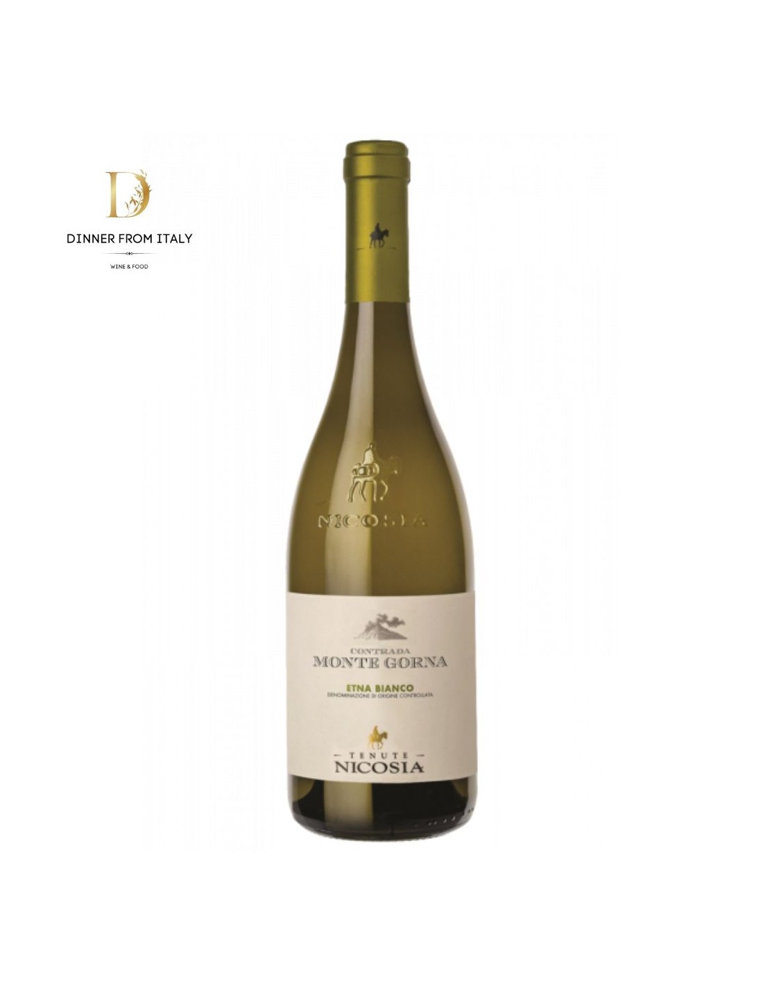 Etna Bianco DOC "Monte Gorna" Biologico Nicosia, alla degustazione si presenta con un colore giallo paglierino intenso, apre all’olfatto su tipici sentori minerali di pietra lavica, seguiti da quelli di fiori e frutta a polpa bianca matura, erbe aromatiche, note marine e balsamiche. All’assaggio è equilibrato tra freschezza e sapidità, perfettamente corrispondente all’olfattiva e persistente su ritorni minerali.