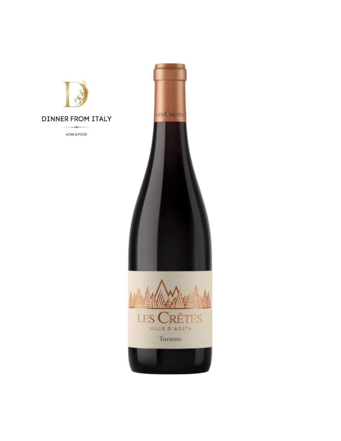 Il Valle D'Aosta DOP "Torrette" è un vino rosso fresco, agile e vivace, presenta numerosi rimandi fruttati ed una vena minerale sottile sullo sfondo che riconduce a tutte le note fruttate pervenute all’inizio. L’espressione di questa DOP proposta dalla cantina Les Crêtes è estremamente territoriale grazie alla combinazione del Petit Rouge (al 70%) con un 30% di uve autoctone del territorio, quali Mayolet, Tinturier, Cornalin e Fumin.